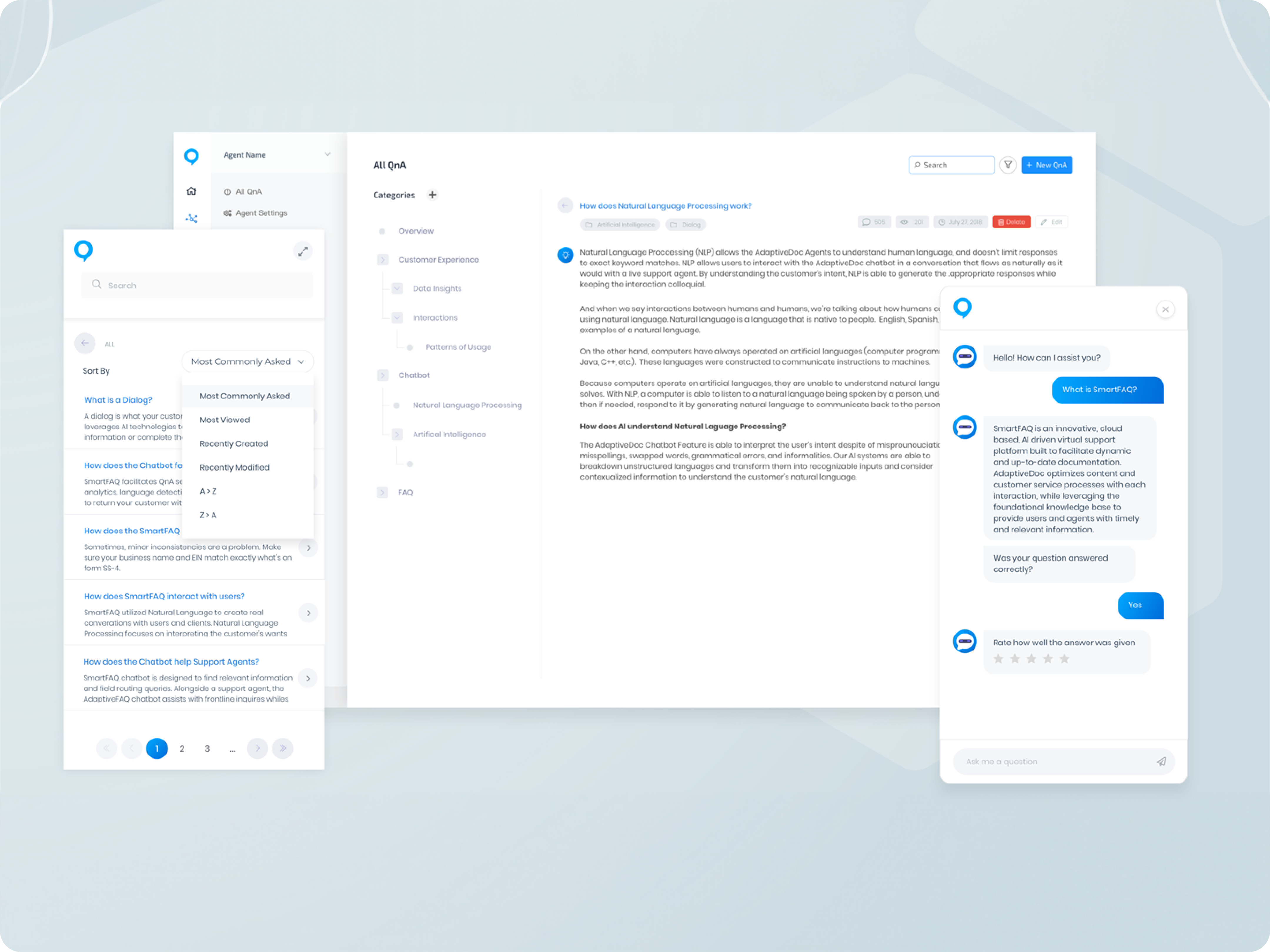 SmartFAQ can be embedded inside each of those software products and websites, with matching themes to each product. Support knowledgebase can now be centralized in one location, and is updated in real-time, in response to customer queries and requests. The integrated AI chatbot runs 24/7, answering most of customers’ questions, lessening the support burden on the support team. New support team members can be quickly trained on the product, as the knowledgebase is now centralized and can be smartly queried.